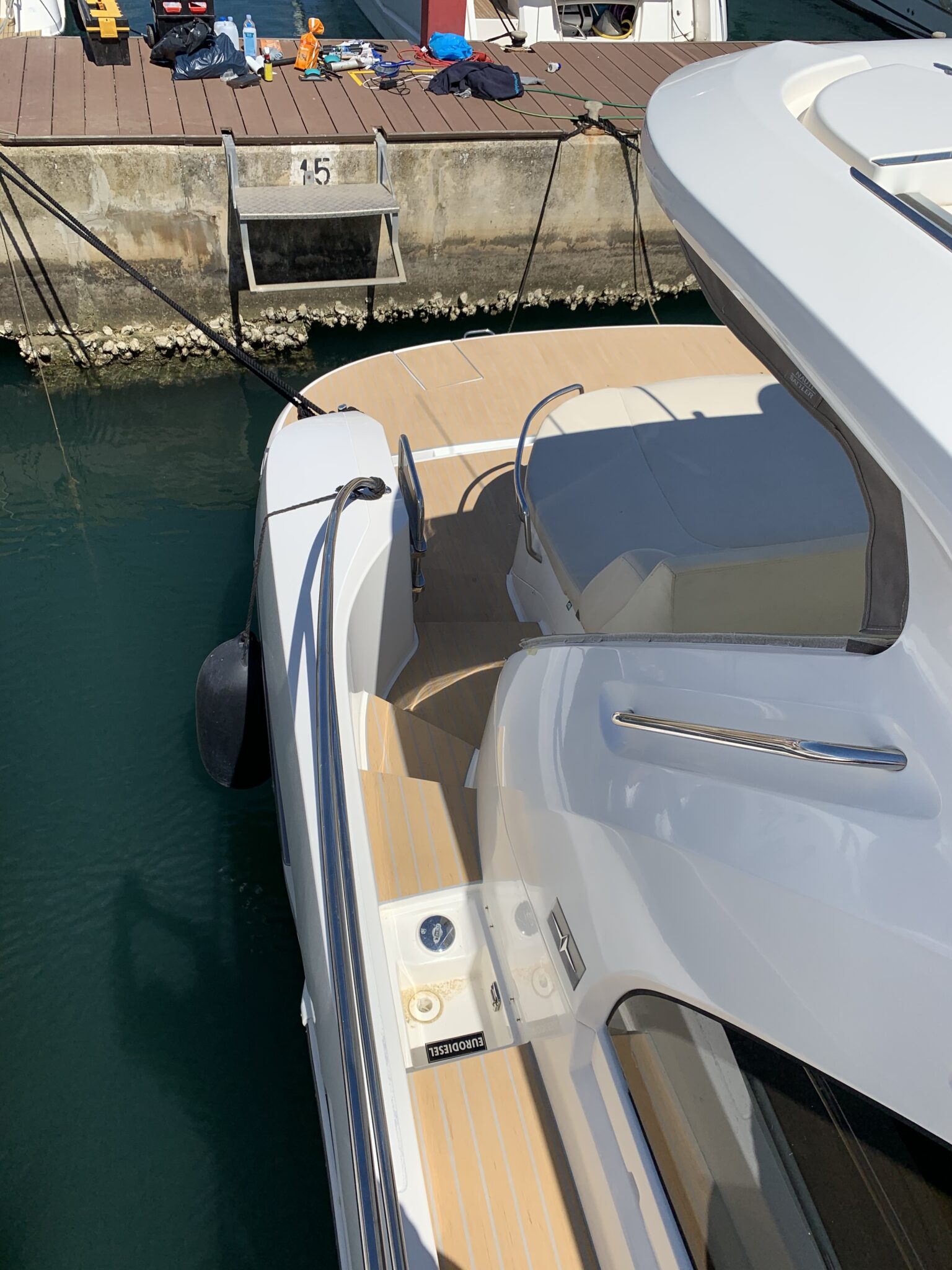 PlasDECK u punom sjaju na jahti Bavaria 44HT u kombinaciji Blonde siva fuga. Brod je osvježen i izgleda kao da je sada izašao iz tvornice.