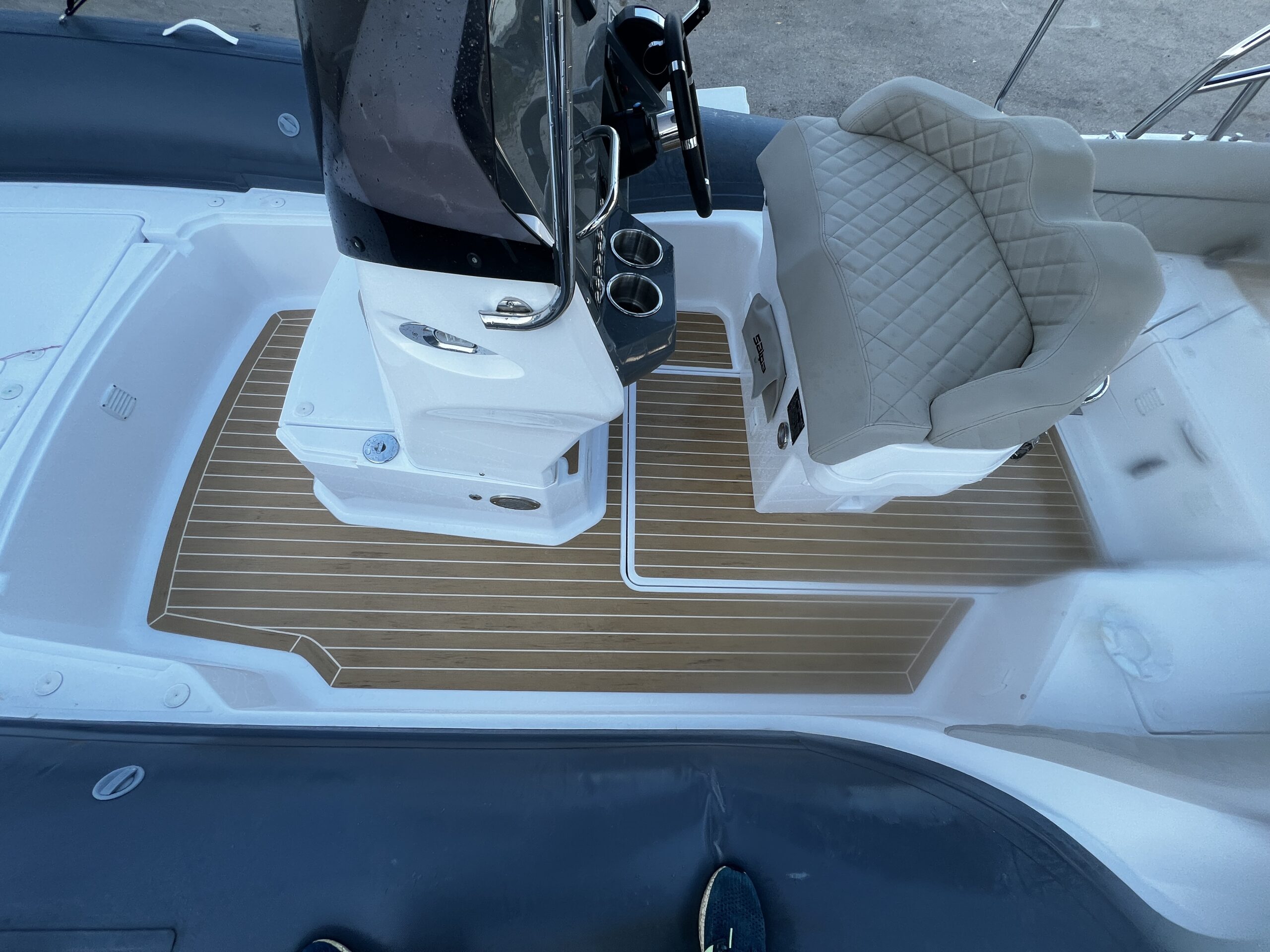 Das PlasDECK Synthetik-Teak auf dem Salpa RIB in Vodice zeigt, wie sich Design und Funktionalität perfekt vereinen lassen. Wenn auch Ihr Boot elegant aussehen und gleichzeitig sicher und praktisch bleiben soll, wählen Sie PlasDECK und werden Sie Teil der vielen zufriedenen Eigner an der Adria.