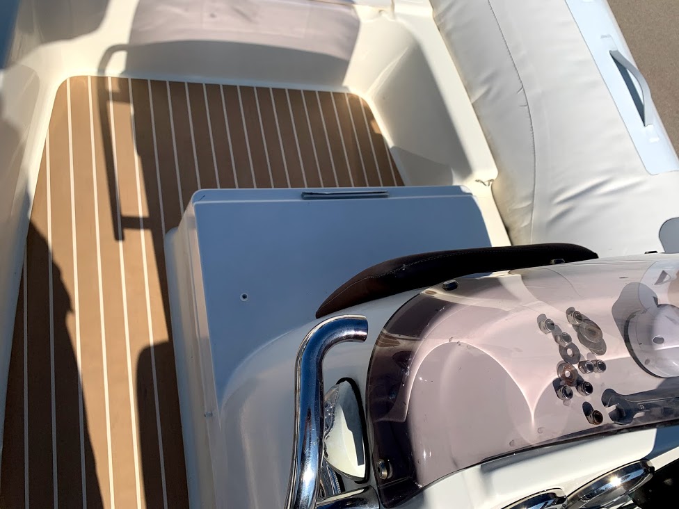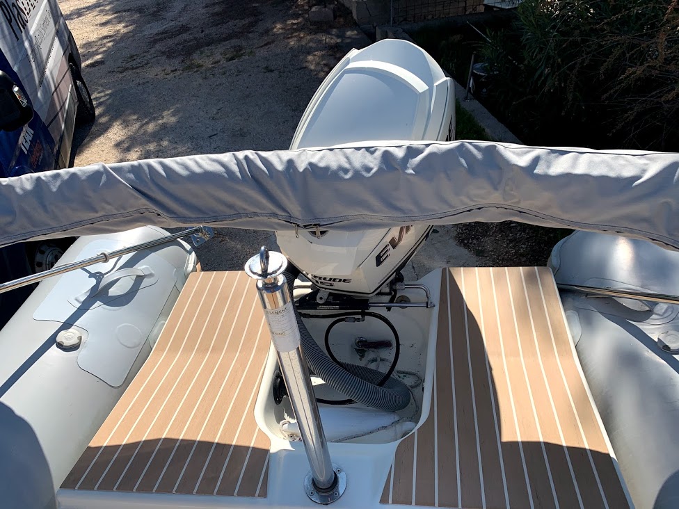Eine schöne Farbe aus künstlichem Teakholz mit weißen Fugen für diejenigen, die möchten, dass ihr Boot anders aussieht. Installationsort Tisno auf der Insel Murter.