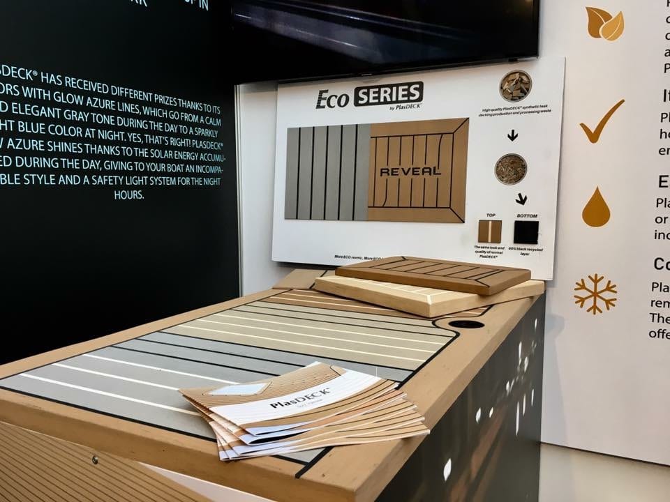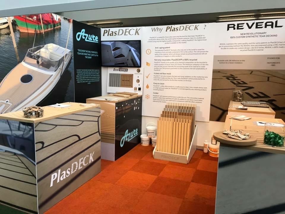 This year we gathered from all countries of EU as representatives PlasDECK synthethic teak at the largest B2B fair in the world. We presented our new top of the line products from the group PlasDECK “REVEAL”. The material is PlasDECK, and all the lines, textlines are made on CNC machine and can be in many kind of shapes.
