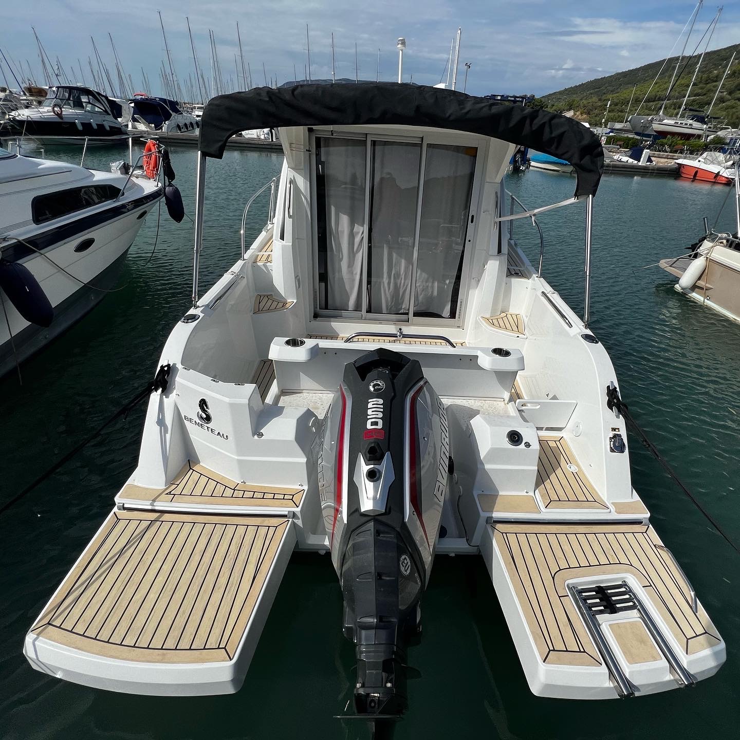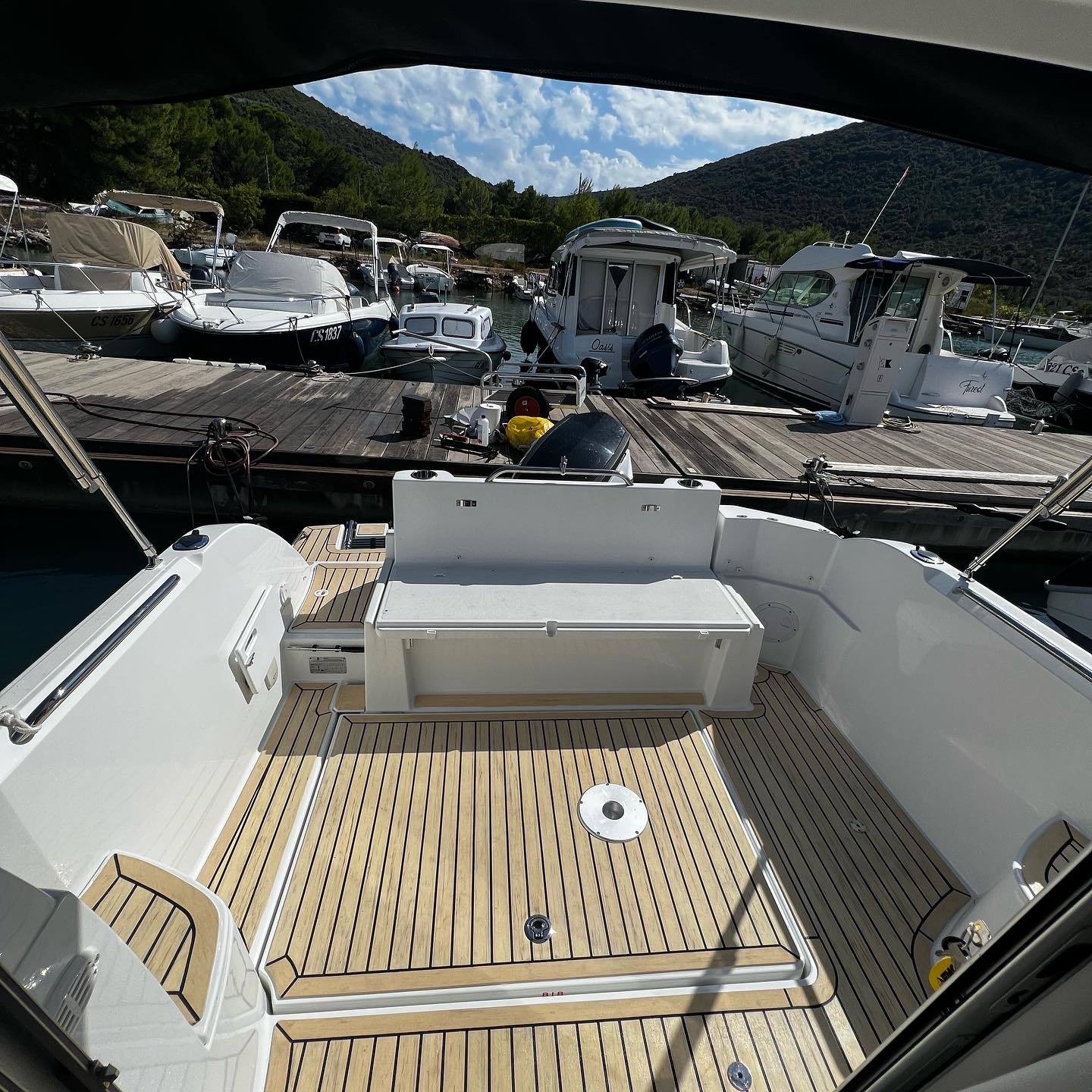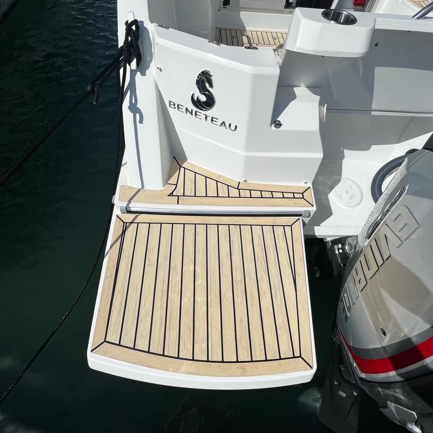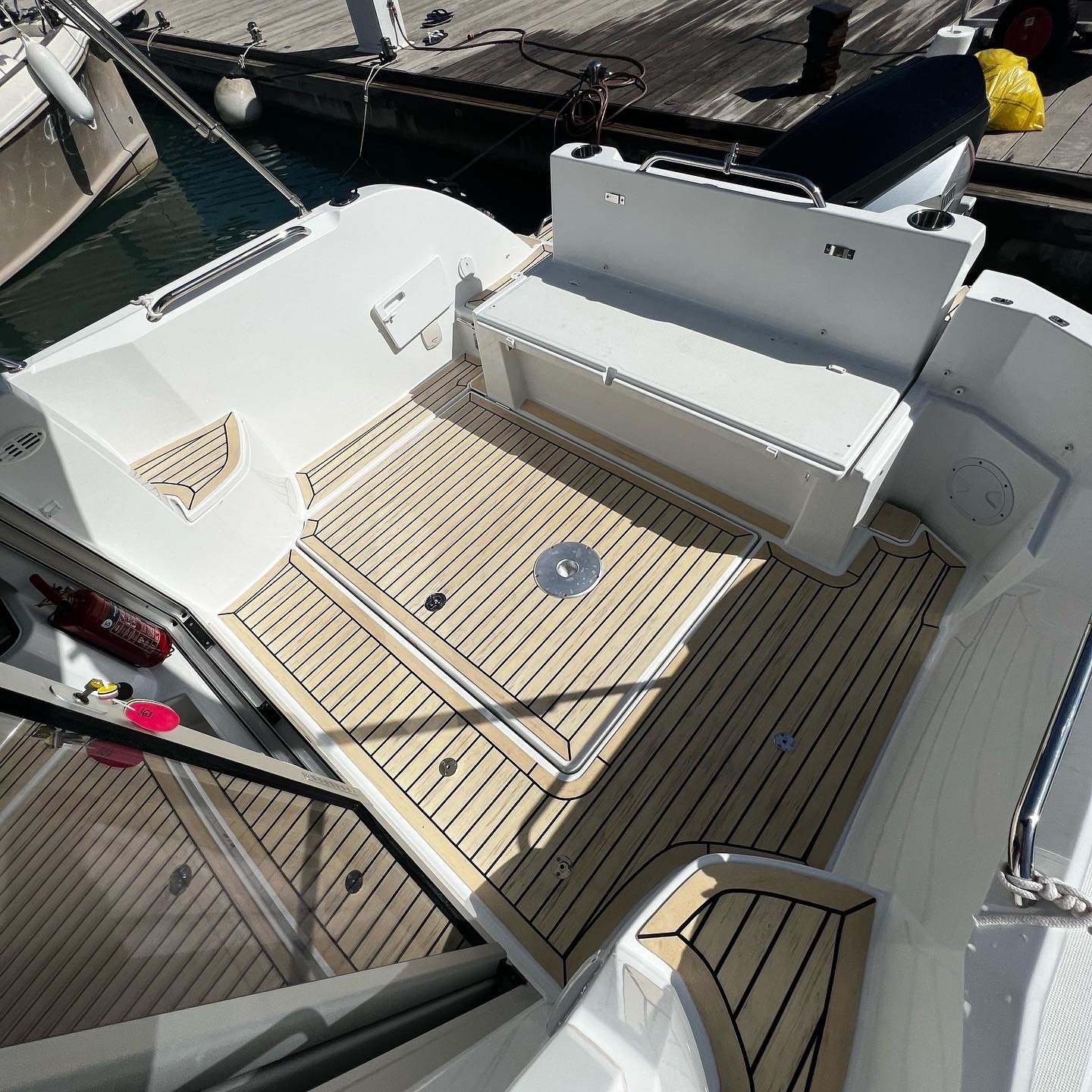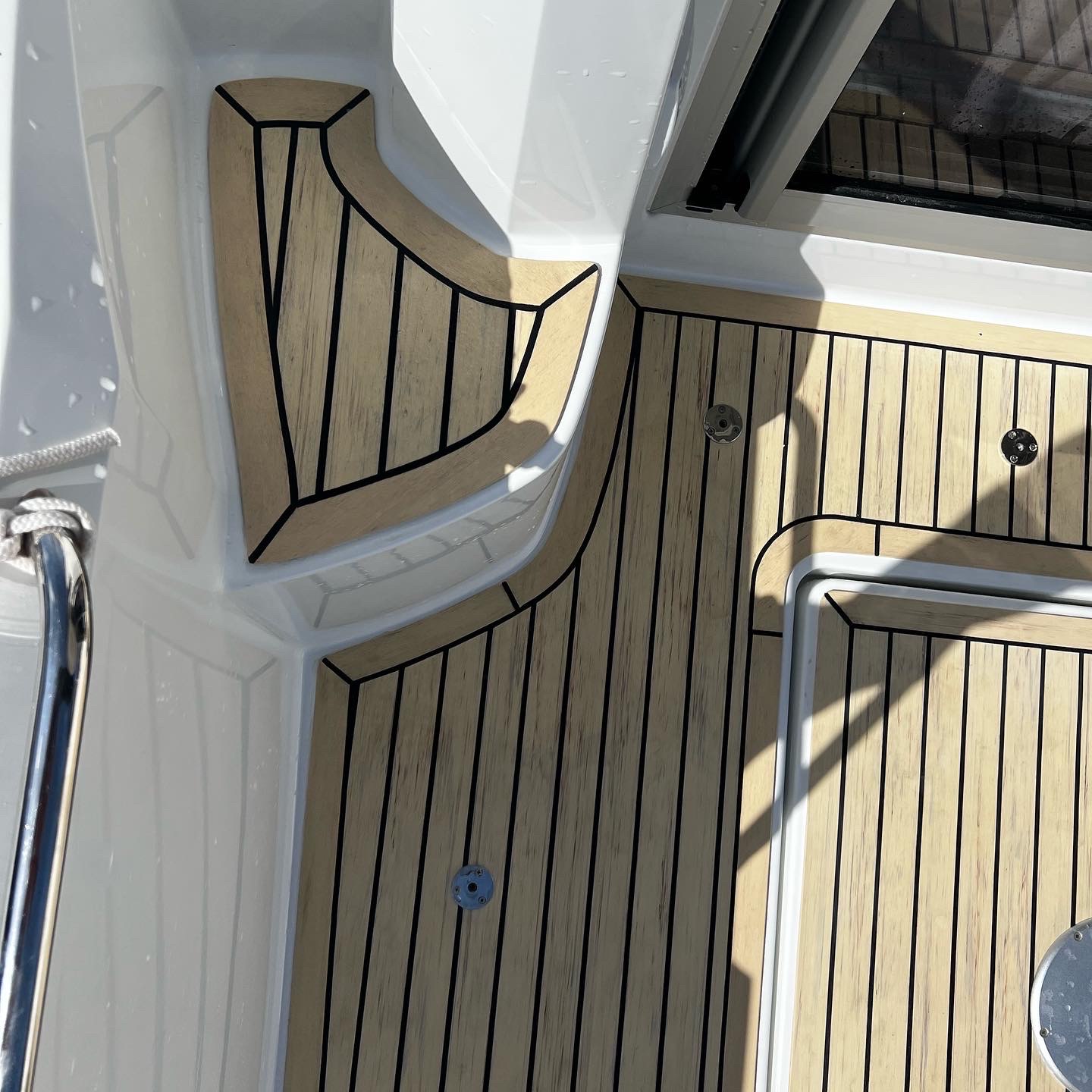A new level of comfort on the Antares 8 boat! Now with PlasDECK coolteak synthetic teak – maintenance-free, no overheating. Enjoy the feel of real wood, walk barefoot with ease, and focus on the pure pleasure of sailing.