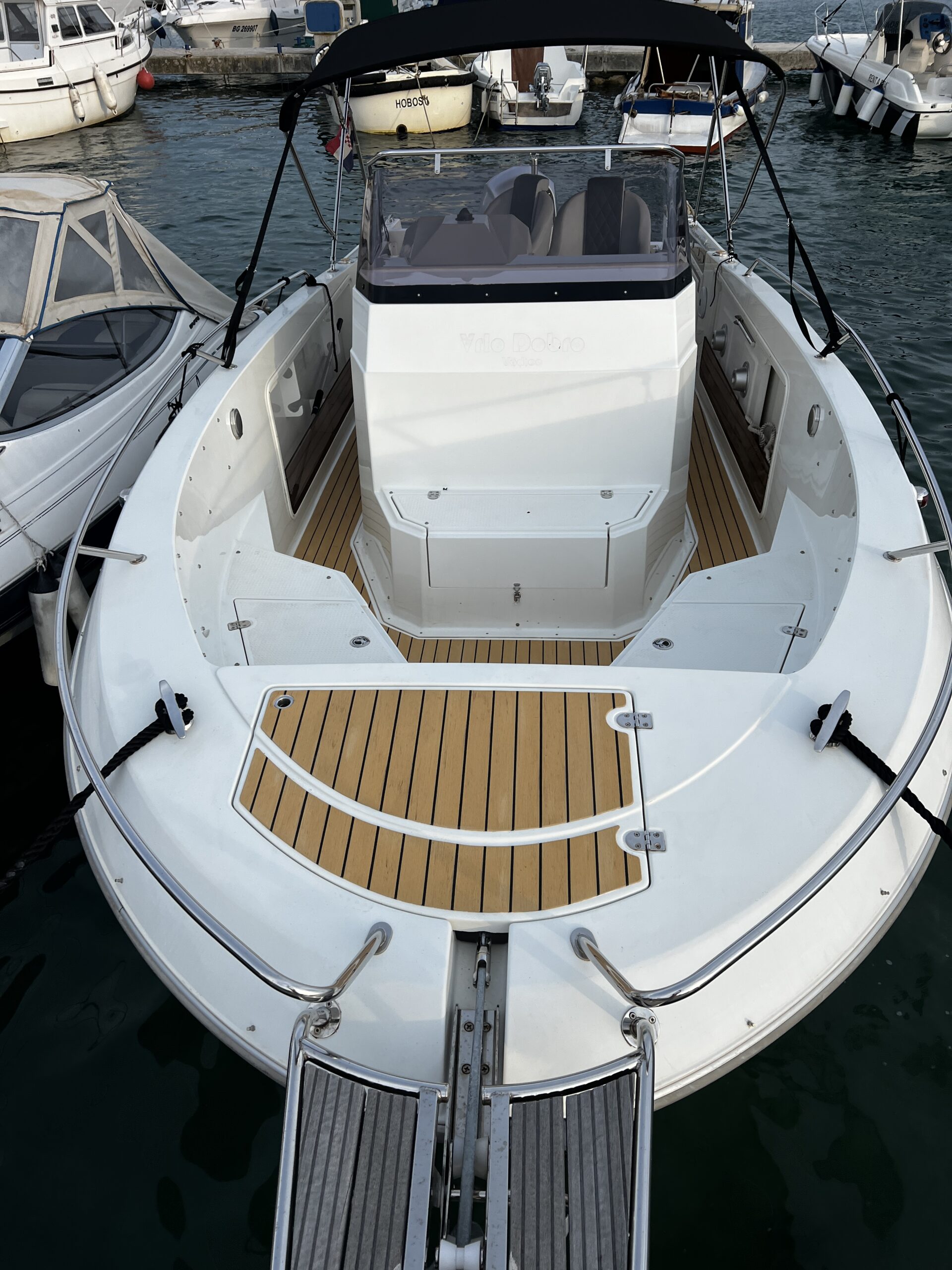 In Vodice, we have outfitted an Atlantic Marine boat with new artificial teak in blonde black color. The synthetic teak elegantly covers the deck, providing a sophisticated aesthetic while maintaining high resistance to external influences. It is equipment that combines functionality and modern design, creating a pleasant space for enjoying maritime adventures