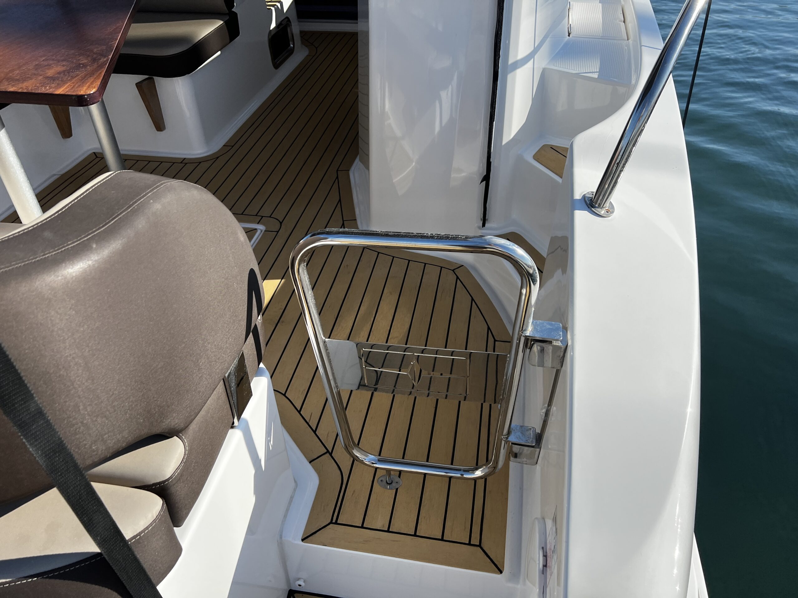 The Bavaria S33 HT impresses with its elegance, and the artificial teak in the color Blonde Black adds a modern charm. Enjoy luxury and comfort on the waves with this sophisticated choice.