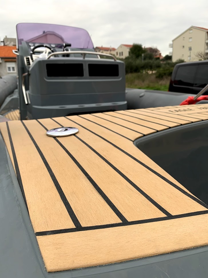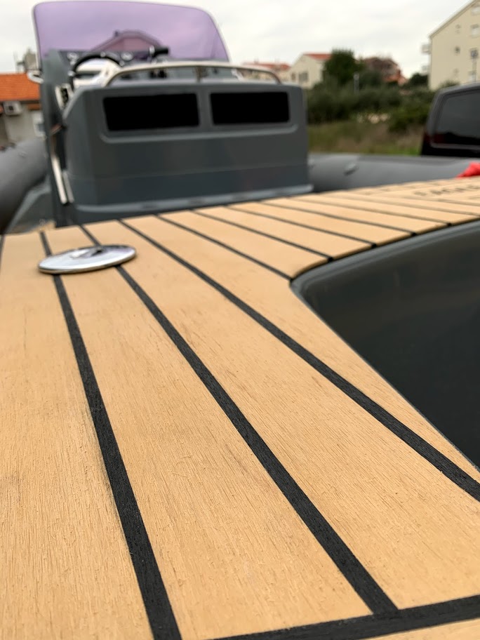 The picture shows that there is an almost unrecognizable difference between the model of artificial teak PlasDECK in Blonde with black grout and natural teak. PlasDECK is the best alternative to natural teak. No maintenance, no heat in the sun, no fungus, permanent color does not absorb blood, ketchup, oils.