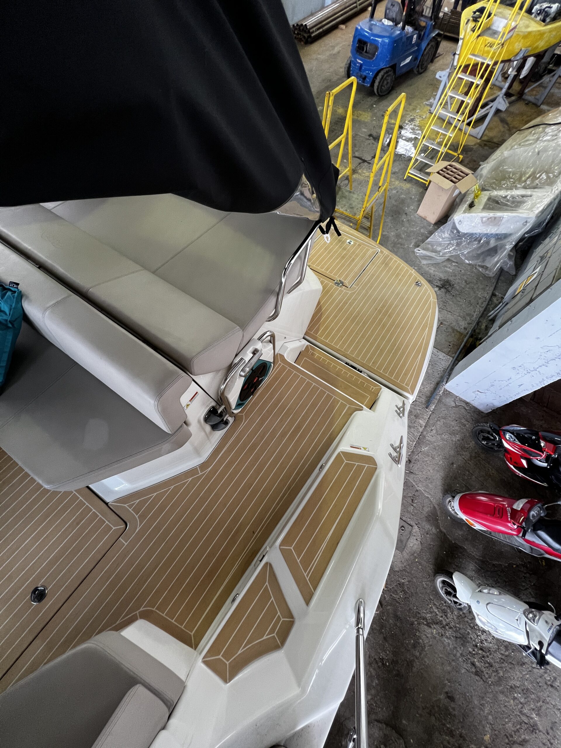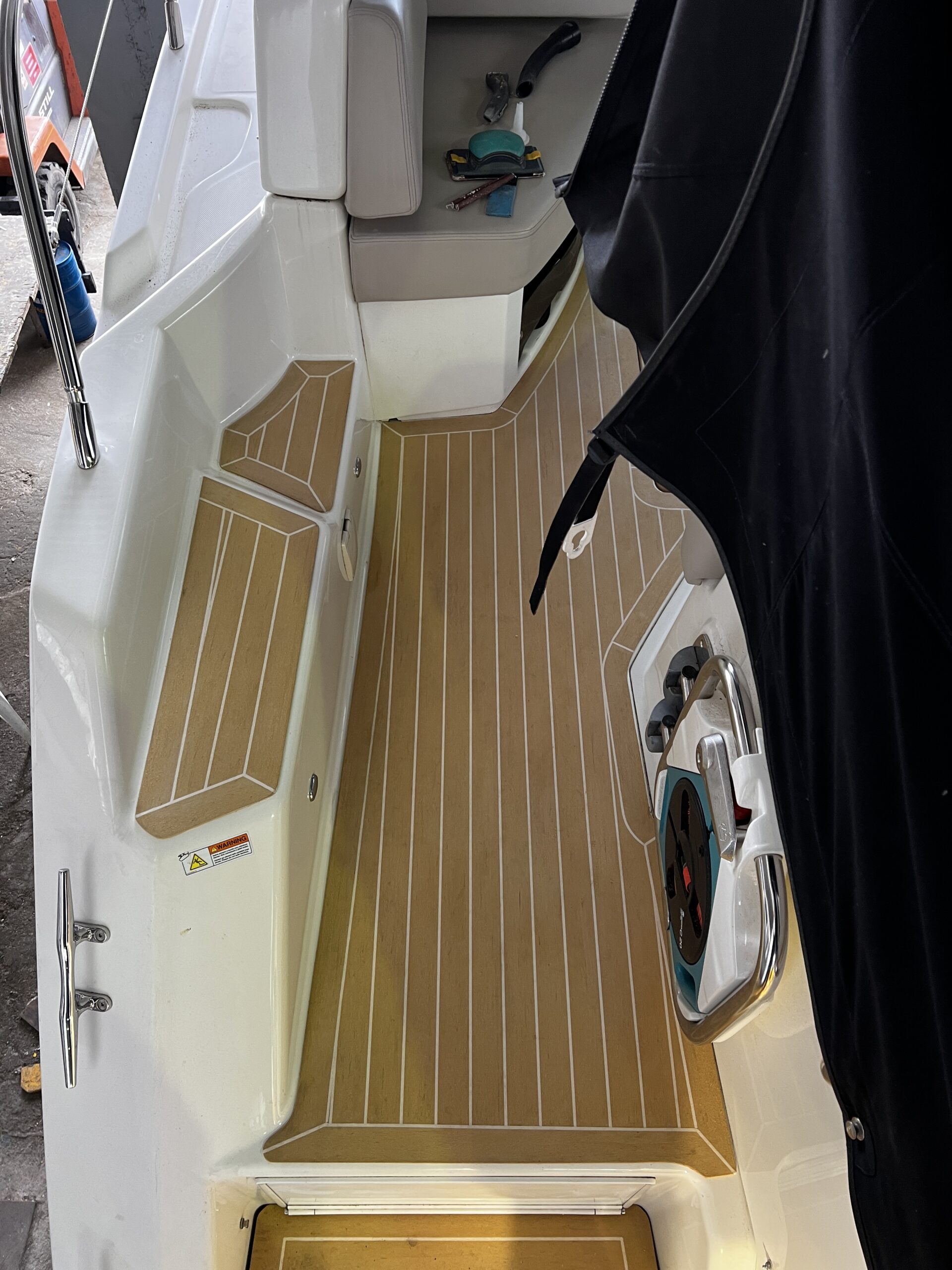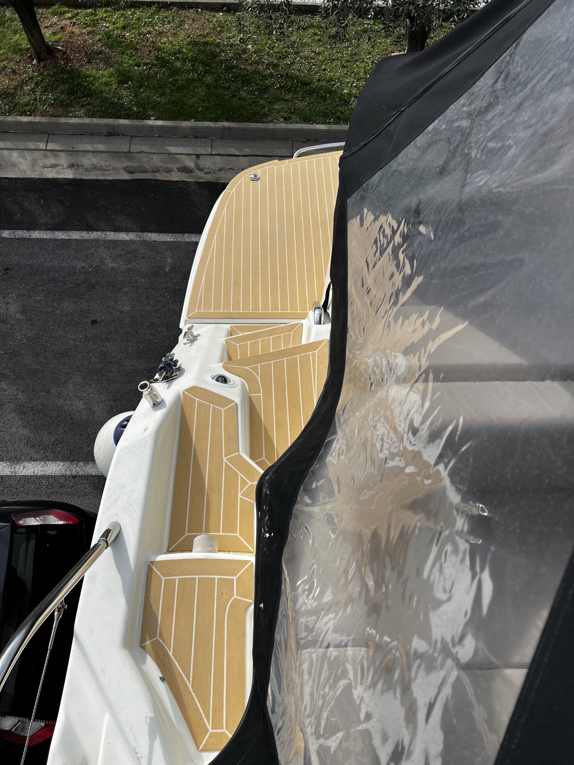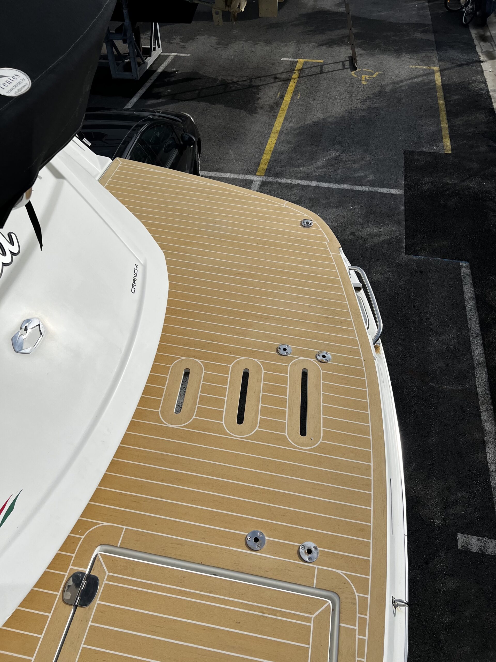 Luxurious transformation! The new artificial teak in the color Blonde White perfectly complements the elegance of this beautiful Cranchi 44 HT yacht on the picturesque island of Krk. Enjoy every sailing adventure now with an added touch of luxury.