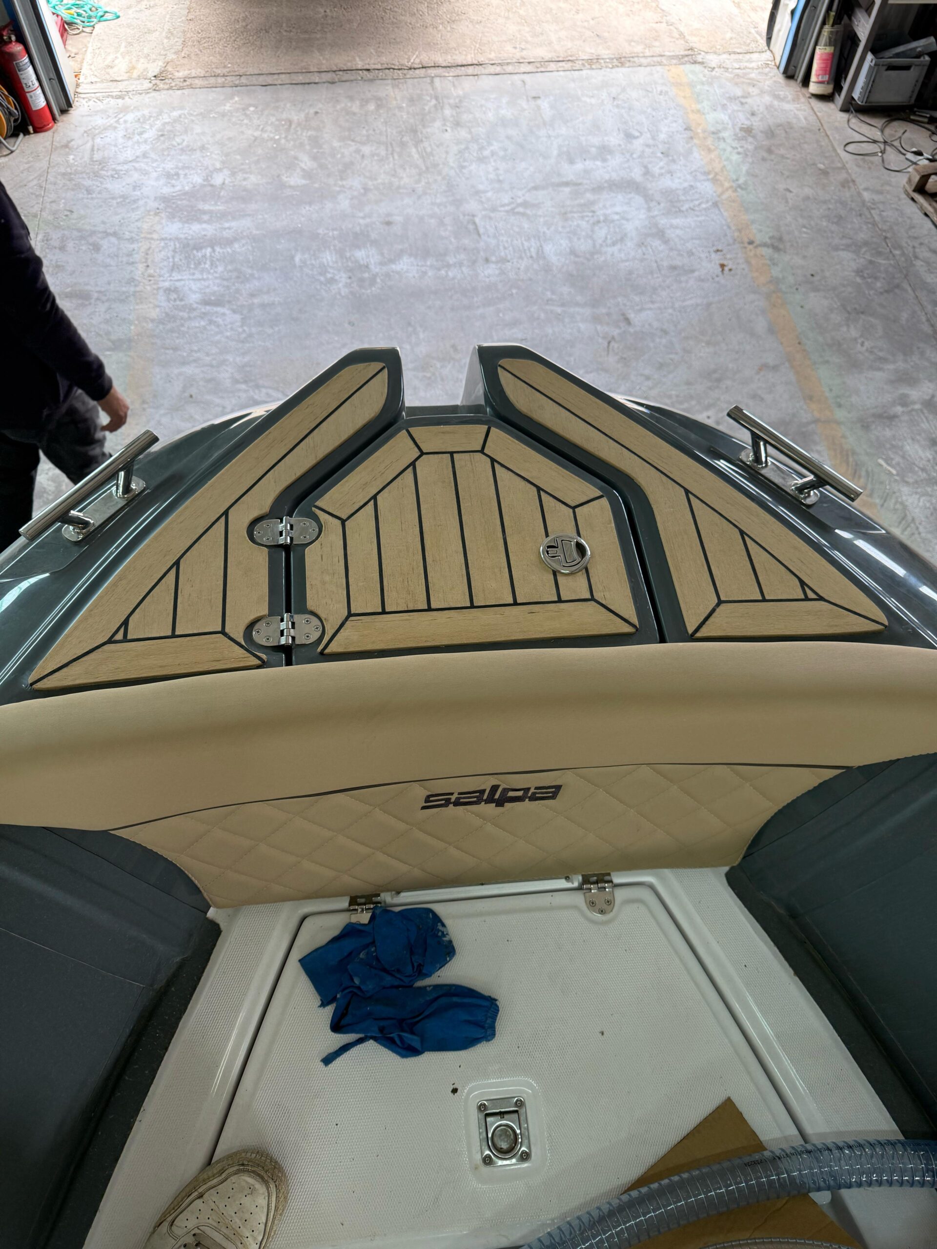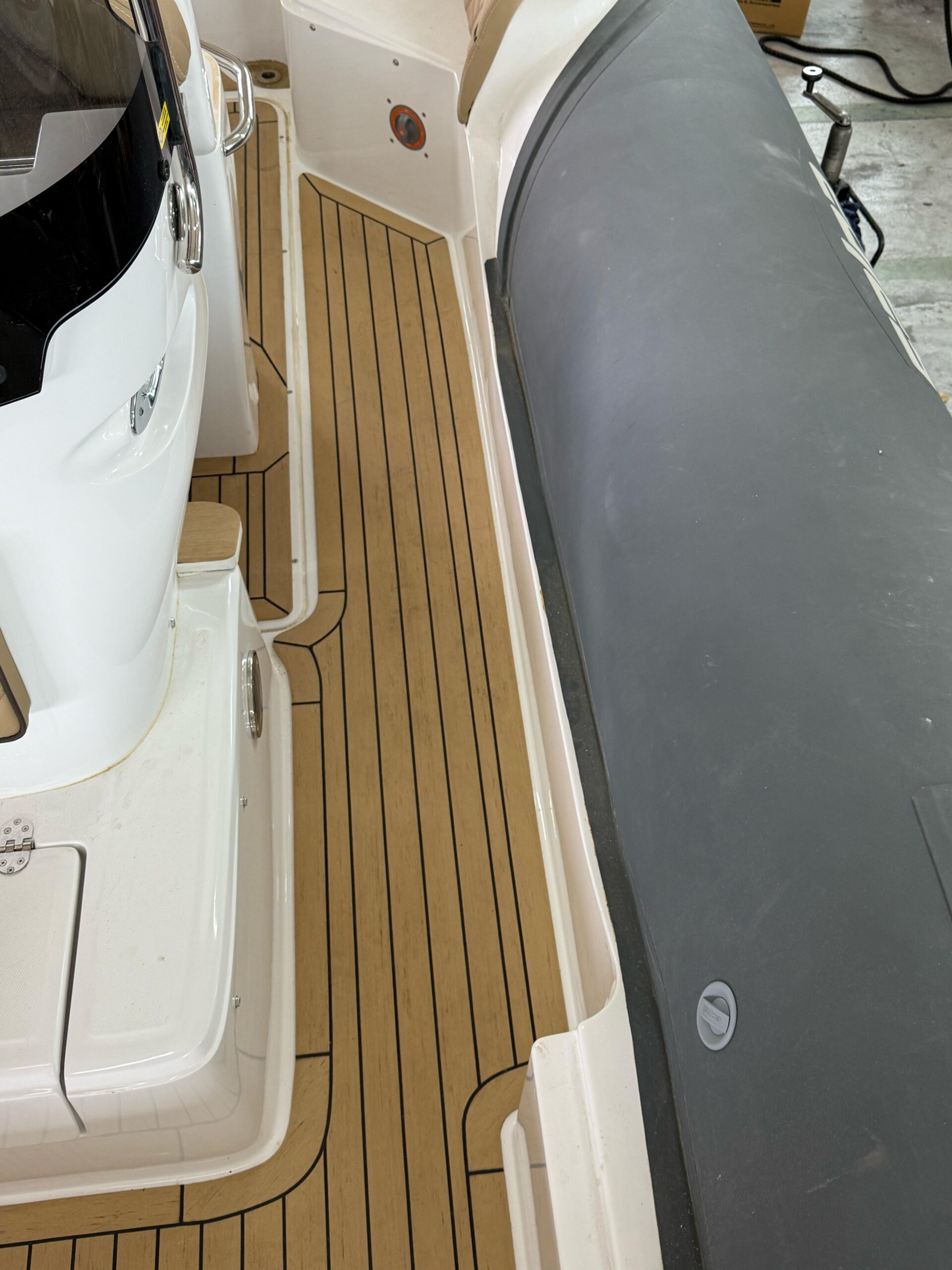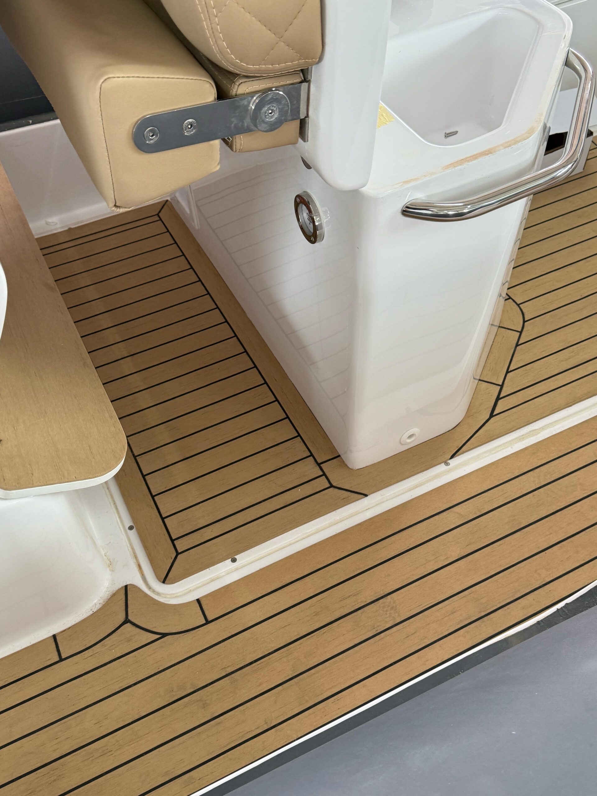 The Salpa Solei 23 is known for its modern design and versatility. With the addition of PlasDECK synthetic teak, the boat now boasts a more refined look, added comfort, and improved safety. The Teak Decking team completed a fully customized installation, ensuring the teak lines followed the vessel’s contours perfectly.