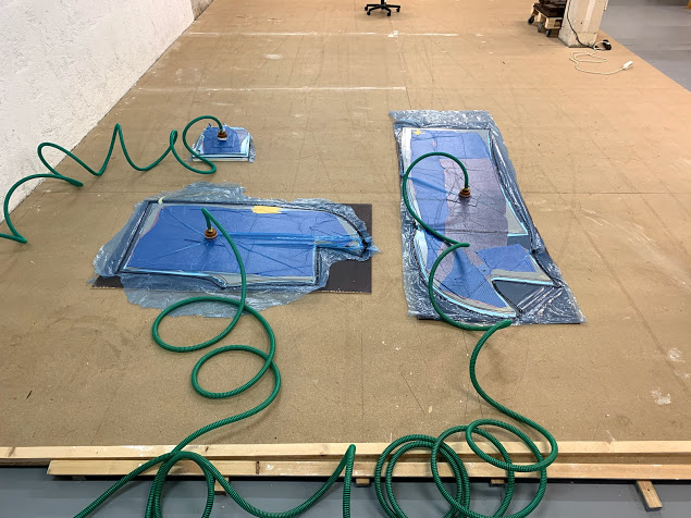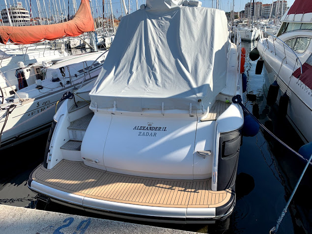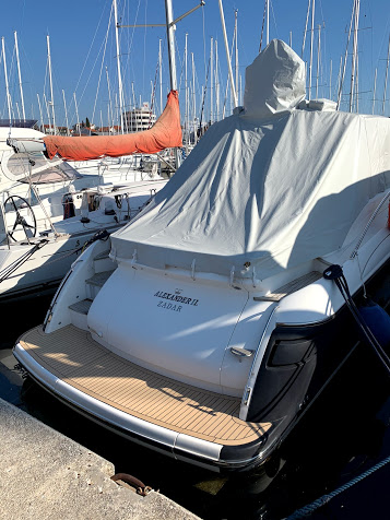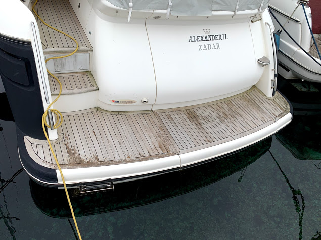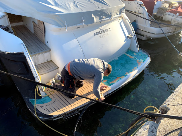 After removing the old teak, we cut the entire platform, sanded the surface and coated it with primer. Since the teak is located in a recessed part on the platform, we first glued it with a vacuum technique to a 6mm waterproof plywood and then glued it all together on the aft platform. With waterproof plywood, we got the height of the teak.