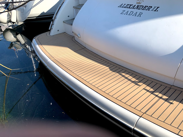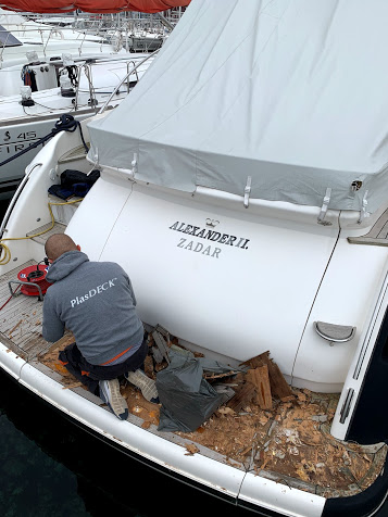 On this yacht, the natural teak completely failed due to lack of maintenance. The owner hired us to remove the old teak and install a new artificial teak PlasDECK.