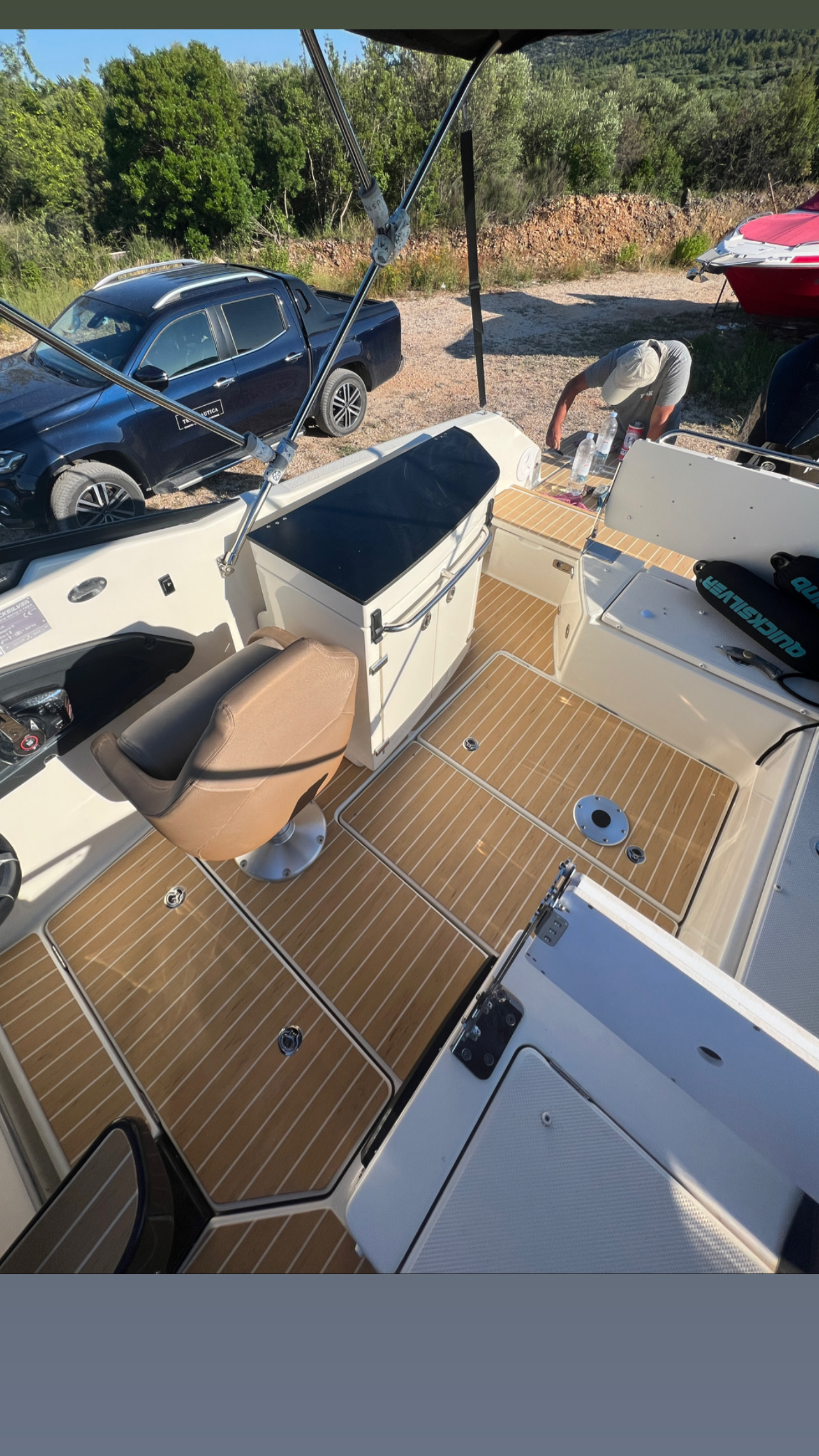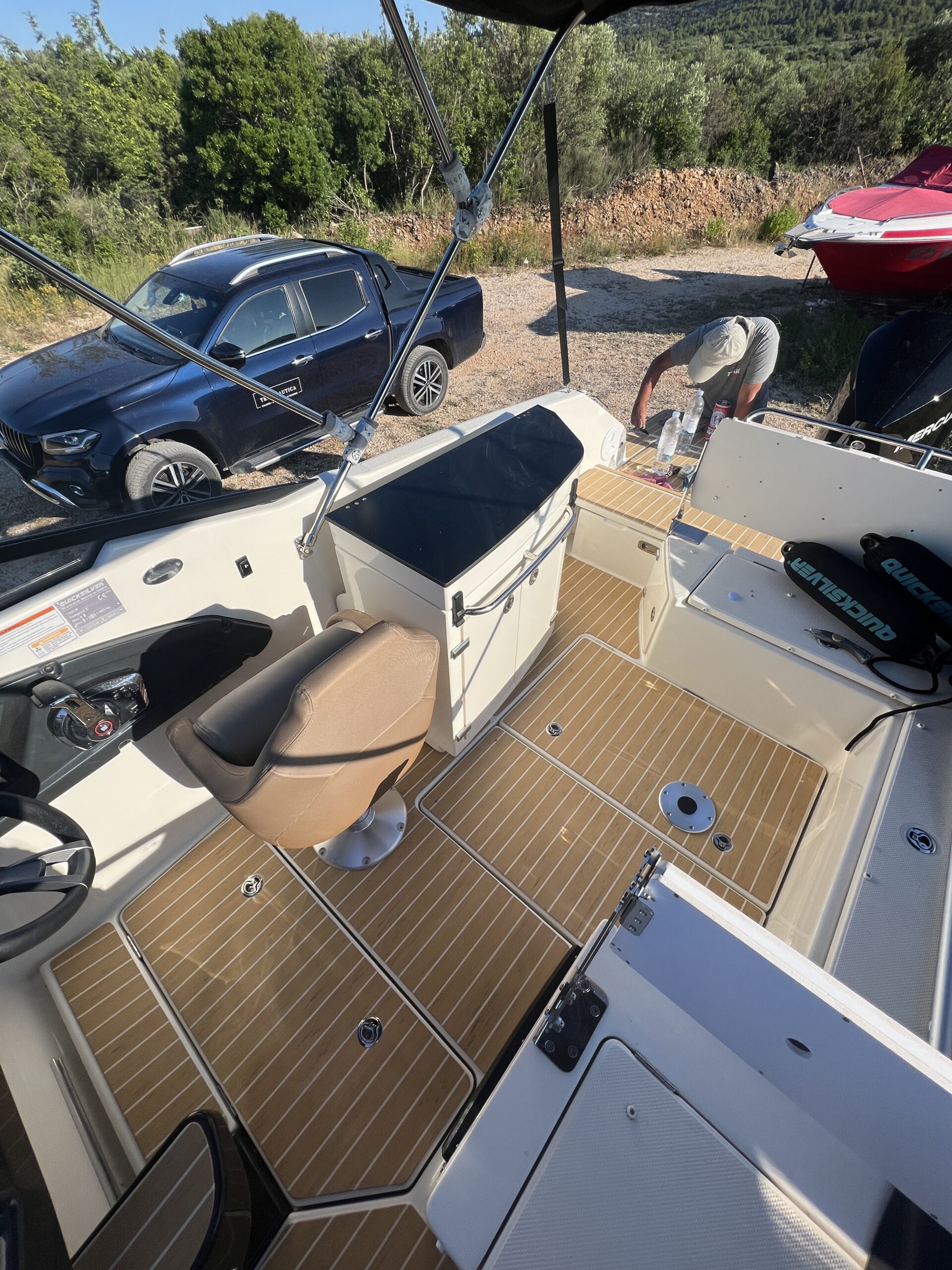 The luxurious appearance of the Quicksilver boat in Tribunj is further accentuated by the elegant and durable PlasDECK synthetic teak in the beautiful color Blonde White.