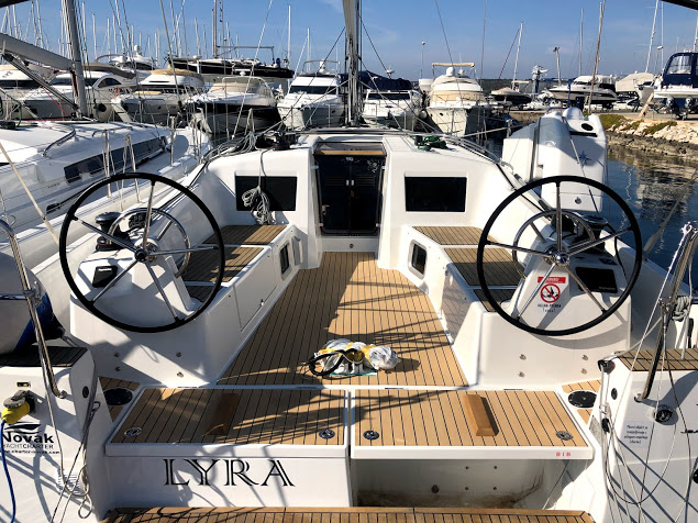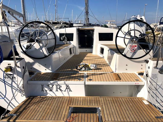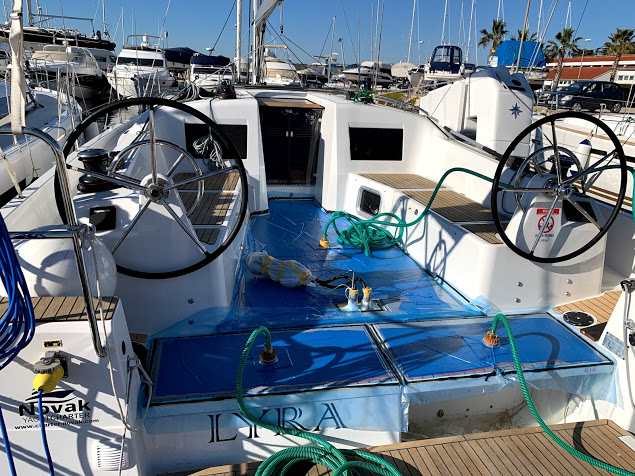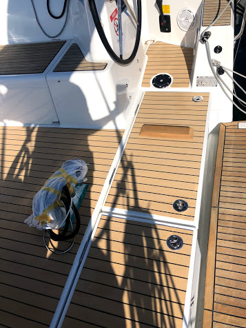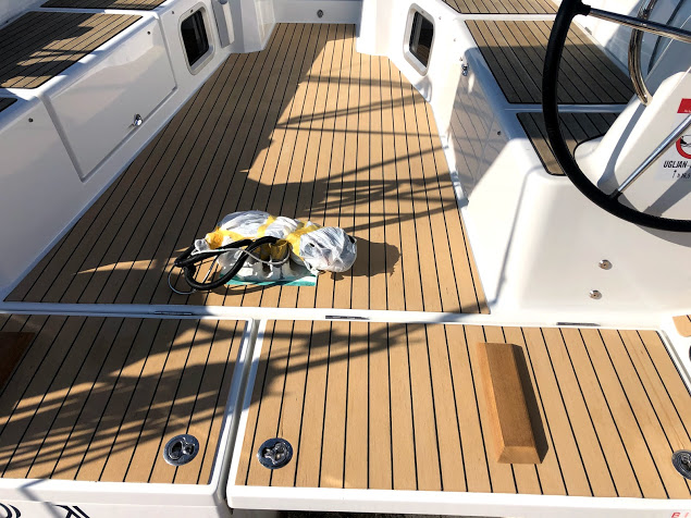 On the beautiful sailboat Sun Odyssey 410 by Novak Charter, we installed artificial teak on a vacuum technique.